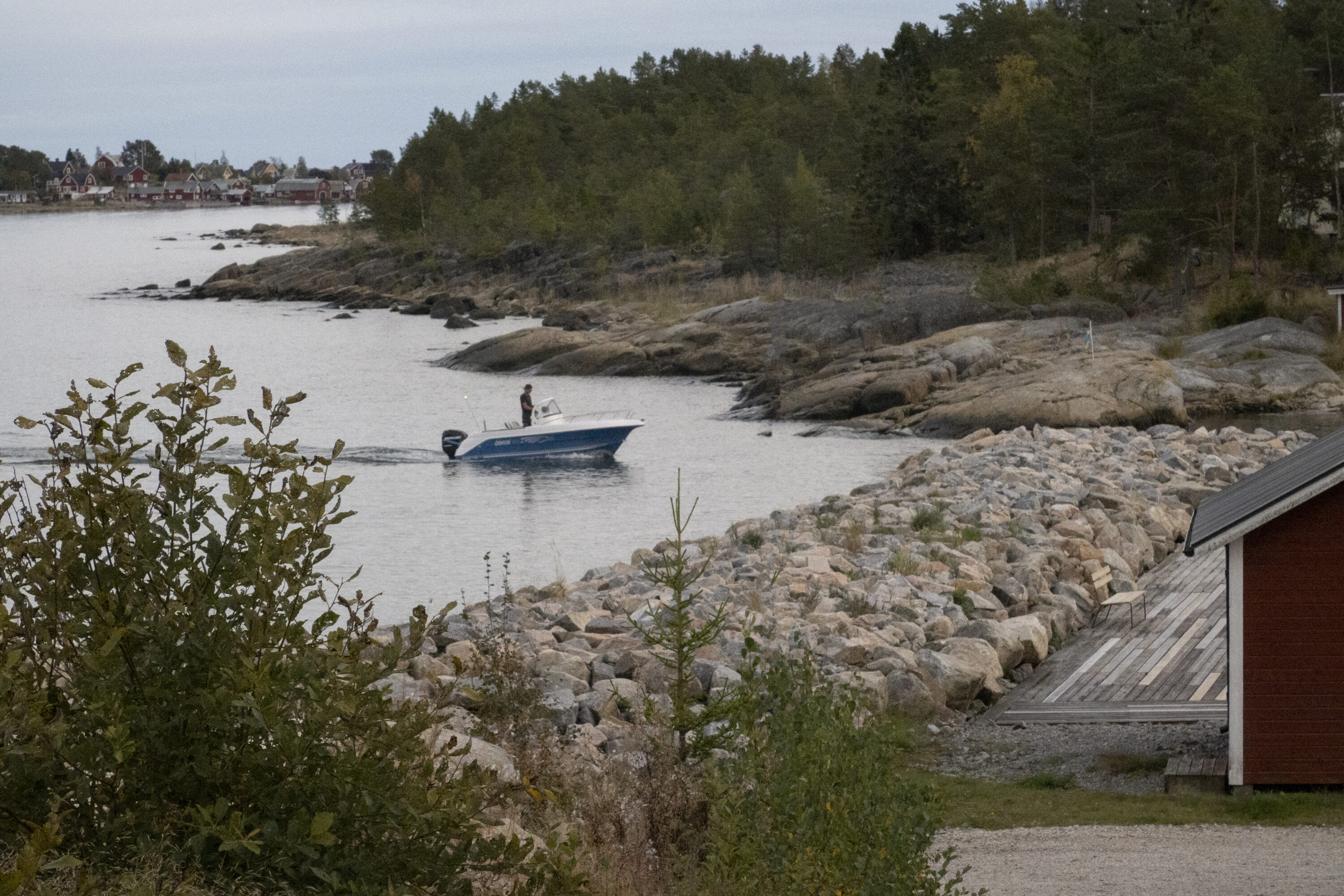 En ensam båt på väg in när jag gick kvällspromisen